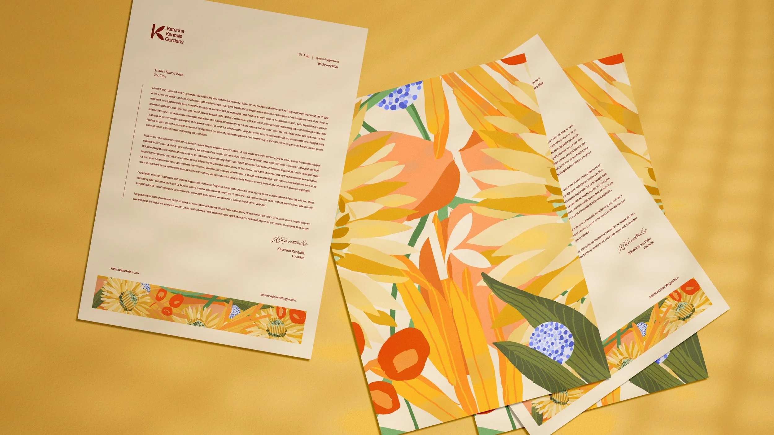 Katerina wanted to separate herself from other garden designers in the industry, so we worked together to create an identity that packs a punch through the use of bold colour and hand-crafted illustration. Each illustration was created to be flexible and adaptable to it’s environment to mirror her garden and landscape designs.